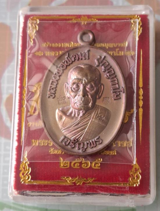 เหรียญเจริญล่าง 65 หลวงพ่อพัฒน์ ปุญฺญกาโม เนื้อทองแดง เลข ๑๘๐๖ สวยๆ พร้อมกล่องเดิม |