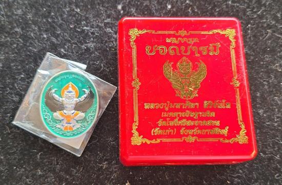 เหรียญพญาครุฑ หลวงปู่ศิลา วัดโพธิ์ศรีสะอาด รุ่นยอดบารมี ลังนำฤกษ์ เนื้อกะไหล่เงินลงยา เลขสวยNo.6 |