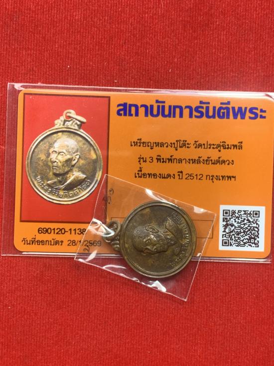 พระหลวงปู่โต๊ะปี 12 เนื้อ ทองแดง กลมกลาง 4 อิ สภาพ สวย มาพร้อมบัตรรับรองครับ
