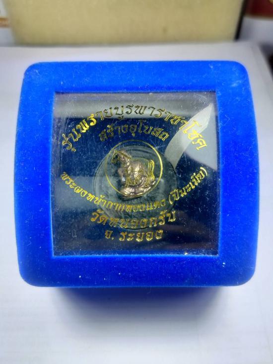 พระผงรูปเหมือนฐานปูปลา หน้ากากทองแดง ด้านหลัง 12 ปี นักษัตร ( ปีมะเมีย ) พิมพ์เล็ก รุ่น พรายบูรพาราชาโชค สร้างอุโบสถ ปี 2550 เนื้อ ว่านไพรดำ หมายเลข 22 พร้อมกล่องกำมหยี่เดิมจากวัด รุ่นประสบการณ์ |