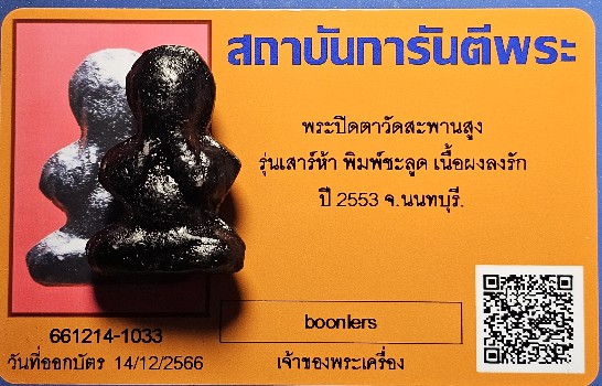พระปิดตา วัดสะพานสูง นนทบุรี พิมพ์ชลูด รุ่นเสาร์ห้า ปี 2553 พร้อมบัตรการันตรี |