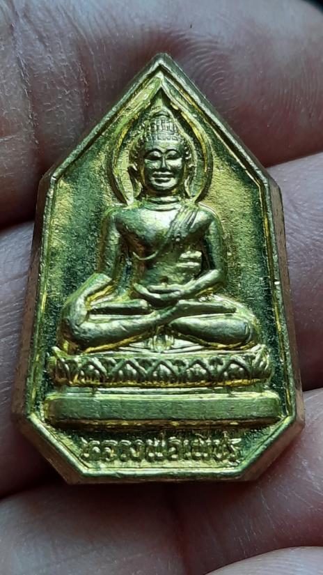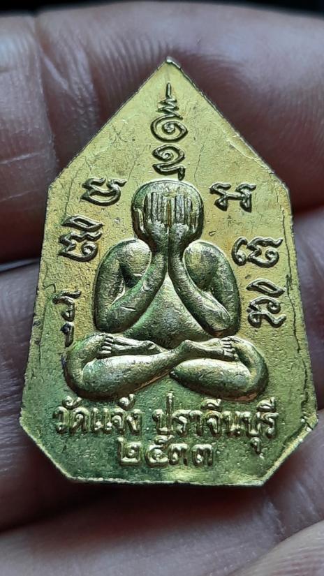 เหรียญปั๊ม หลังพระปิดตา หลวงพ่อเพชร วัดแจ้ง จ.ปราจีนบุรี ปี 2533 (เนื้อทองเหลือง ฐานฝังตะกรุด) |