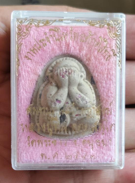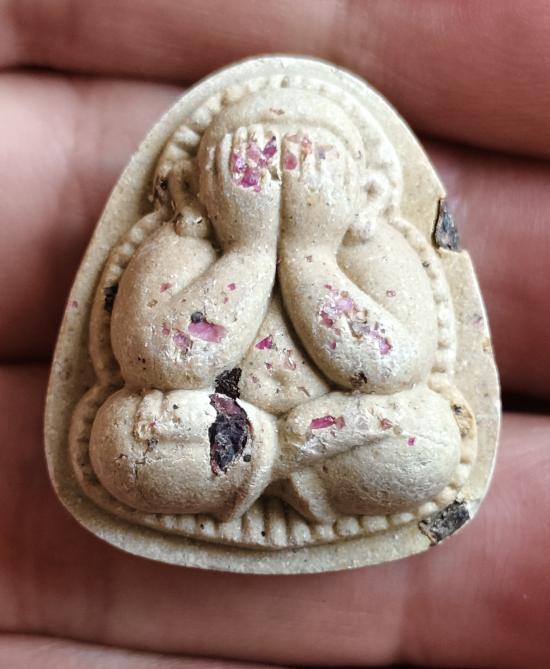 พระปิดตาปุ้มปุ้ยเนื้อเกสรโรยพลอย+จารยันต์หลวงปู่ทิมวัดพระขาวงานประจำปี 47(กล่องเดิม)ด้านหลังมีรอยจาร |
