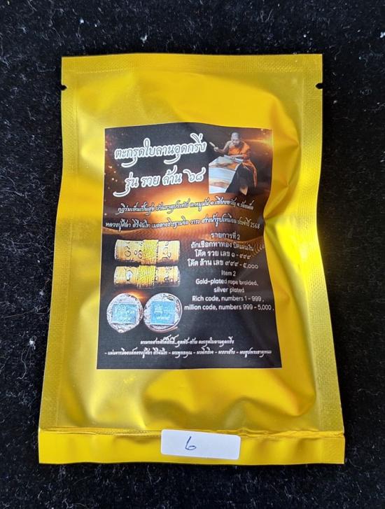 หลวงปู่ศิลา รุ่นรวยล้าน68 ตะกรุดใบลานอุดกริ่ง ถักเชือกทาทอง ปิดแผ่นเงิน ซีลเดิมลุ้นเลขสวย |