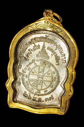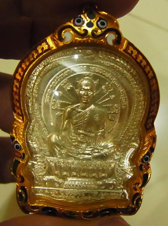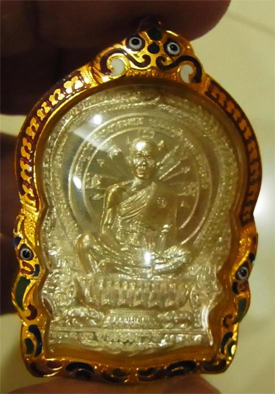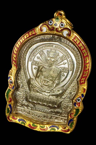 หลวงพ่อคูณ นั่งพานชนะมาร เนื้อเงิน สวยใส จมูกโด่ง หมายเลขมงคล 168 เลี่ยมทองลงยา