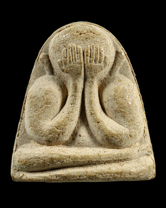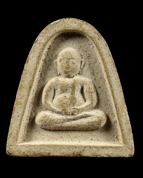 พระปิดตาหลวงปู่เฮี้ยง วัดป่าฯ พิมพ์หลังพระสังกัจจายน์ เนื้อผง ปี 2505 จ.ชลบุรี สวยมาก |