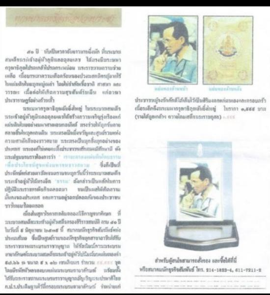 แผ่นทองคำพระบรมฉายาลักษณ์ในหลวงรัชกาลที่๙ ทองคำ97.66%
