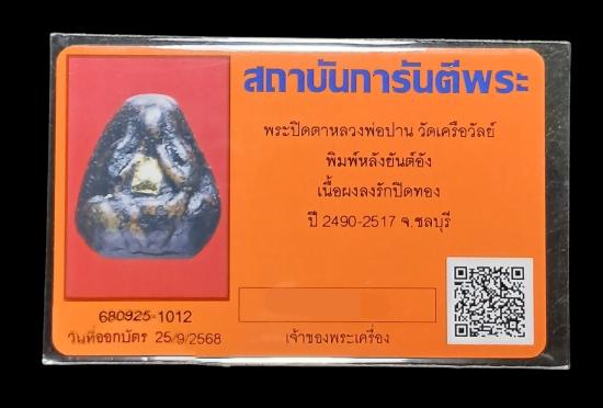 เคาะเดียวต่ำกว่าทุน...ปิดตาหลวงพ่อปาน วัดเครือวัลย์ ชลบุรี พิมพ์หลวงพ่อครีพ หลังยันต์อัง(หายาก) เนื้อผงลงรักปิดทองเดิม ยุคต้น ปี 2490-2517 พระสวยครับ พร้อมบัตรรับรองจากทางเว็บ