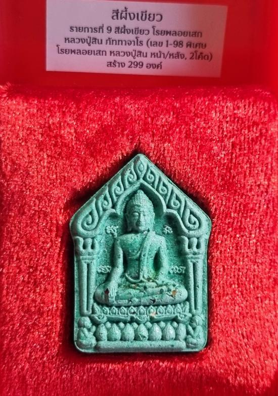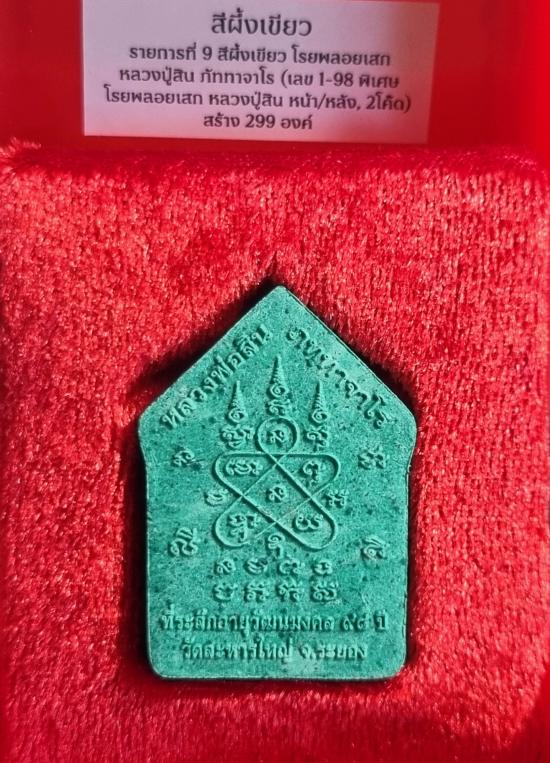 - รก.9 สีผึ้งเขียว โรยพลอยเสกหลวงปู่สิน (เลข 145 เลขสวยๆ) พร้อมกล่อง