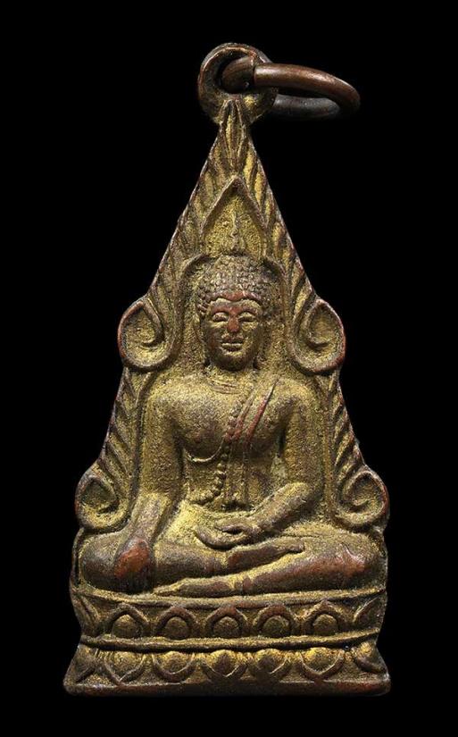 100 / เหรียญสามเหลี่ยมพระพุทธชินราชหลังอกเลา เนื้อทองแดงกะไหล่ทอง เก่าครับไม่ทราบที่ |