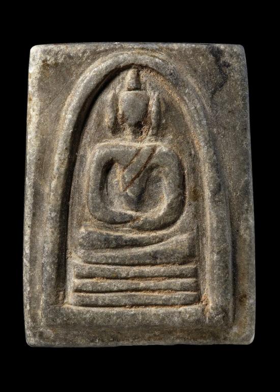 พระพุทธหินแกะ เก่ามีอายุ ไม่ทราบที่ค่ะ ขนาดกว้าง ๒.๒ สูง ๓ ซม.