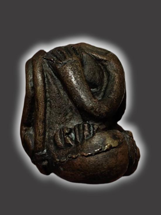 A7173.วัดใจ พระปิดตา เนื้อโลหะผสม เก่า ไม่ทราบที่ พิมพ์ทรงสวยงาม เคาะเดียวเเดง