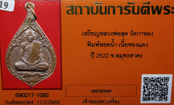 เหรียญหลวงพ่อสุด วัดกาหลวง พิมพ์หยดน้ำ เนื้อทองแดง ห่วงเดิม ปี2522 จ.สมุทรสาคร + บัตรG-pra สภาพสวยเดิมค่ะ สภาพตามรูปทุกประการค่ะ
