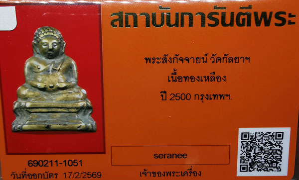 พระสังกัจจายน์ วัดกัลยาฯ เนื้อทองเหลือง ปี2500 จ.กรุงเทพฯ + บัตรG-pra สภาพเดิมค่ะ สภาพตามรูปทุกประการค่ะ