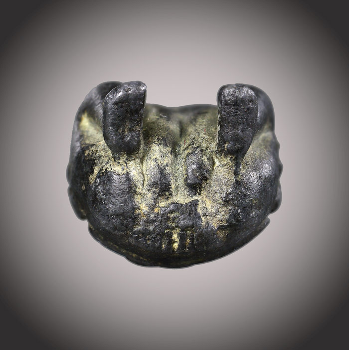 พระปิดตา พิมพ์นั่งยอง (ไม่ทราบที่)เนื้อตะกั่ว สภาพเก่ามีอายุ |