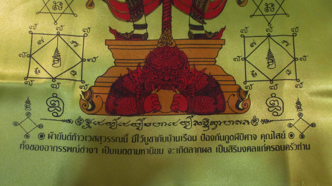 ผ้ายันต์ ท้าวเวสสุวรรณ ไม่ทราบที่ ลวดลายสวย ครับ (พระบ้าน ครับ) |