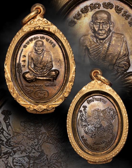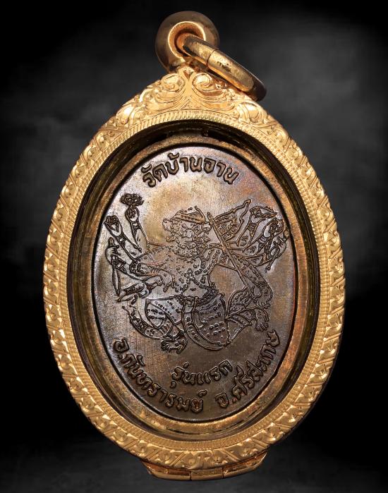 หลวงปู่หมุน เหรียญมนต์พระกาฬ หลวงปู่หมุน ฐิติสีโล วัดบ้านจาน รุ่นแรก ปี พ.ศ. 2543 เนื้อนวโลหะ เลข 419พร้อมตลับทอง สั่งทำใหม่ราคา63,000