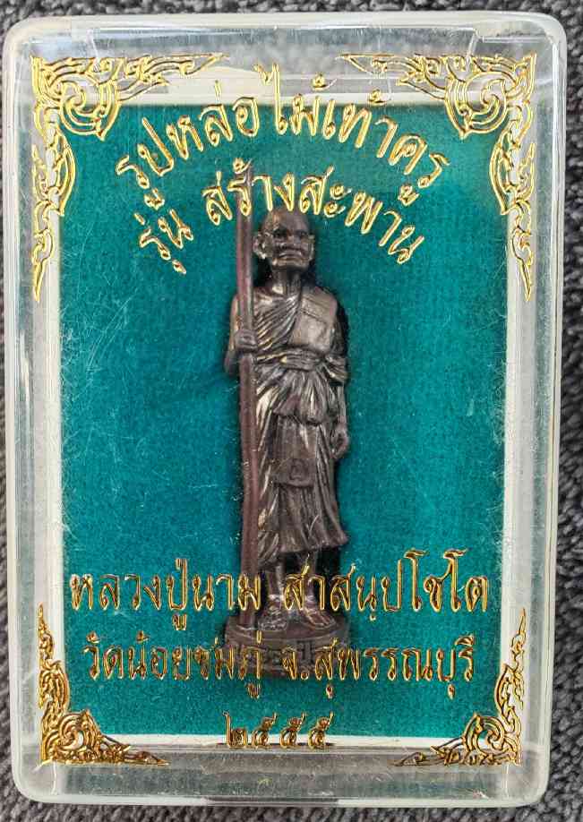 รูปหล่อไม้เท้าครู รุ่นสร้างสะพาน เนื้อนวะ เลข 910 ลปนาม วัดน้อยชมภู่ เนื้อ |