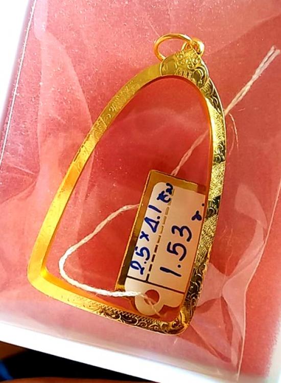 **ไม่ออกบัตรลด500บาท**กรอบทองคำแท้ยกซุ้มสิงห์ ใส่พระกริ่ง/เกจิอื่นๆจอใน2.4+4.1ซม/พระกริ่งที่ใส่ต้อง2.3+3.9ซม..น้ำหนัก 1.53 กรัม |