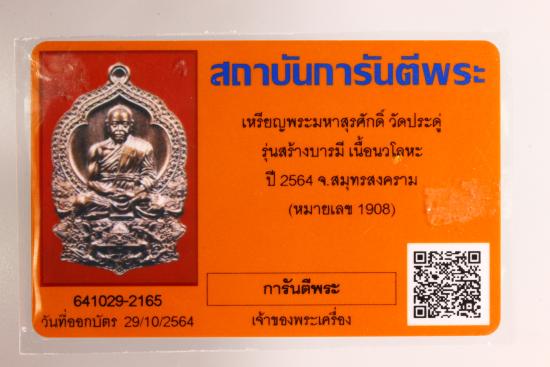 พระมหาสุรศักดิ์ วัดประดู่ พระอารามหลวง เหรียญนั่งพานสร้างบารมี เนื้อนวะ/พร้อมกล่องเดิม