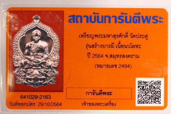 พระมหาสุรศักดิ์ วัดประดู่ พระอารามหลวง เหรียญนั่งพานสร้างบารมี เนื้อนวะ พร้อมกล่องเดิม