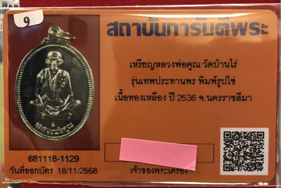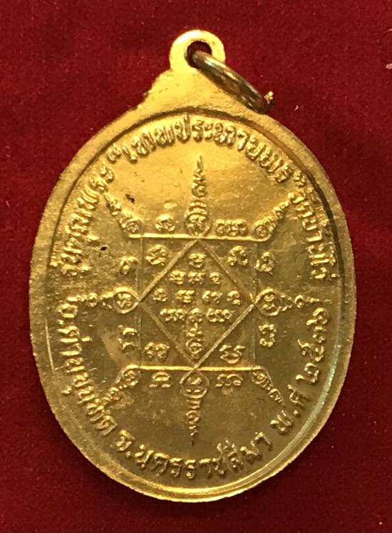 เหรียญหลวงพ่อคูณ วัดบ้านไร่ รุ่นเทพประทานพร พิมพ์รูปไข่ เนื้อทองฝาบาตร ปี 2536 จ.นครราชสีมา มีซองเดิม