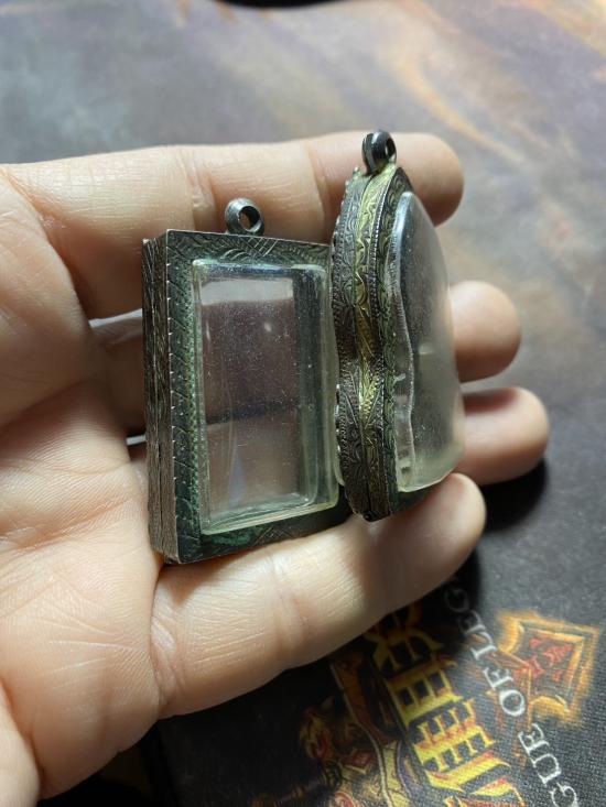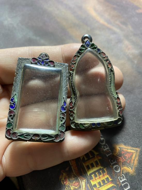 วัดใจของเหมามาขายถูกตามสภาพ กรอบเงินแท้ลงยา 2 ชิ้น ใส่พระสมเด็จทั่วไป+ใส่ พระนาคปรก หรือใกล้เคียง