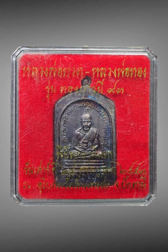 //เคาะแดง//เหรียญพิมพ์ห้าเหลี่ยมหลวงปู่ทวด หลังหลวงพ่อทอง โบราณย้อนยุค หลวงพ่อทอง วัดสำเภาเชย จ.ปัตตานี รุ่นทองบารมี 93 เนื้อทองแดงนอกรมดำ ตอกโค๊ตและหมายเลข6719 สวยเดิมพร้อมกล่องครับ |