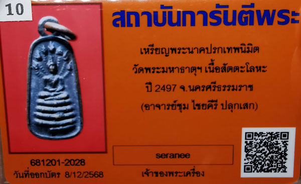 เหรียญพระนาคปรก อาจารย์ชุม ไชยคีรี ปี2497 เนื้อสัตตะโลหะ ห่วงเดิม จ.นครศรีธรรมราช + บัตรG-pra สภาพเดิมค่ะ |
