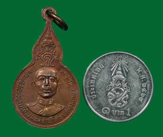 เหรียญหลวงปู่แหวน สุจิณฺโณ ปี พศ.2524 วัดดอยแม่ปั๋ง จ.เชียงใหม่สมทบทุนพิธีเปิดอนุสาวรีย์จอมพลเจ้าฟ้าจักรพงษ์ภูวนารถกรมหลวงพิษณุโลกประชานาถ พิมพ์เล็ก สภาพสวยเดิม |