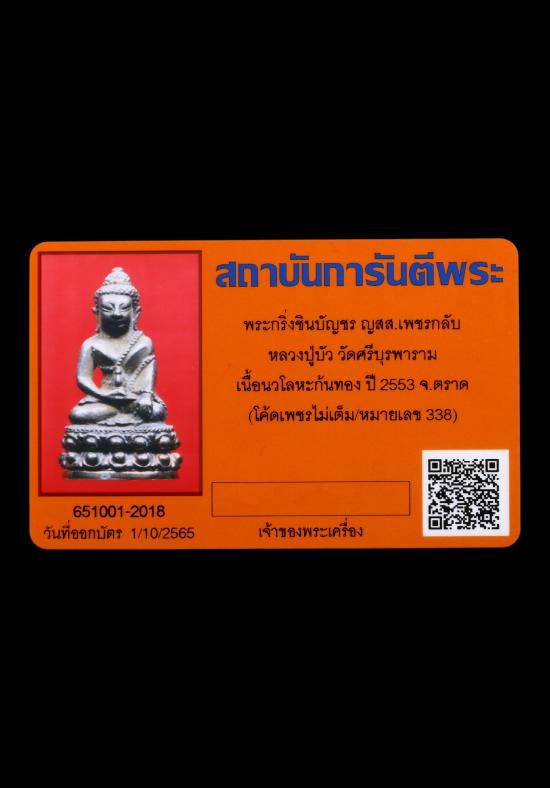 ##วัตถุมงคลชุดนี้ เป็นมงคลนามในความหมายของ " เพชรกลับ " ที่โบราณาจารย์กล่าวว่า จะช่วยให้เรื่องร้ายกลับกลายเป็นดี เรื่องที่ดีกลับดียิ่งขึ้น สิ่งที่ย่ำแย่จะกลับไปสู่ความเจริญรุ่งเรือง พระกริ่งชินบัญชร ญสส.เพชรกลับเนื้อนวะโลหะก้นทองคำหมายเลข338 จำนวนสร้าง498องค์ มีกล่องเดิมพร้อมบัตร |