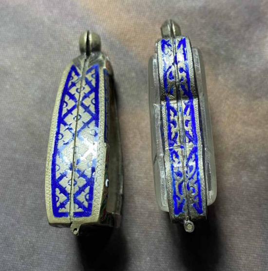 วัดใจของเหมามาขายถูกตามสภาพ กรอบเงินลงยา 2 ชิ้น ใส่พระรูปหล่อพระมเหศวร หรือใกล้เคียง(ไม่มีพาลสติก 1 กรอบ) |