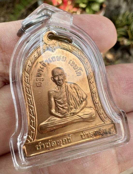 เหรียญบำบัดทุกข์ บำรุงสุข (ระฆังหลังสิงห์) หลวงพ่อเกษม เขมโก สุสานไตรลักษณ์ จ.ลำปาง ปี 2537 เนื้อทองแดง พร้อมเลี่ยม