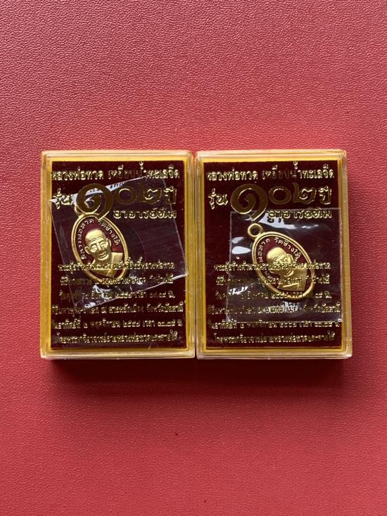 เคาะเดียวแดง เม็ดแตง 2องค์หลวงปู่ทวด รุ่น102ปีอาจารย์ทิม เนื้อชุบทองลงยาสีแดง |