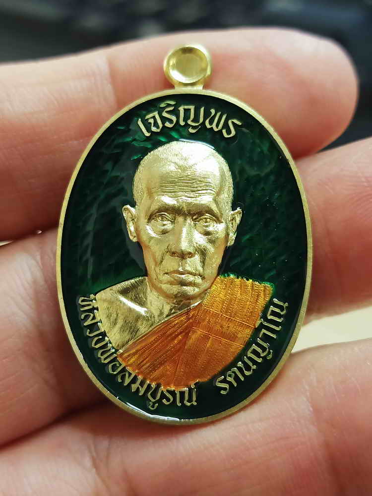 วัดใจ 100 เหรียญเจริญพรครึ่งองค์ รุ่นแรก หลวงพ่อสมบูรณ์ รตนญาโณ วัดหงส์รัตนารามราชวรวิหาร กรุงเทพ 2568 ปลอกลูกปืน ลงยาเขียว จีวร หมายเลข 96 กล่องเดิม |