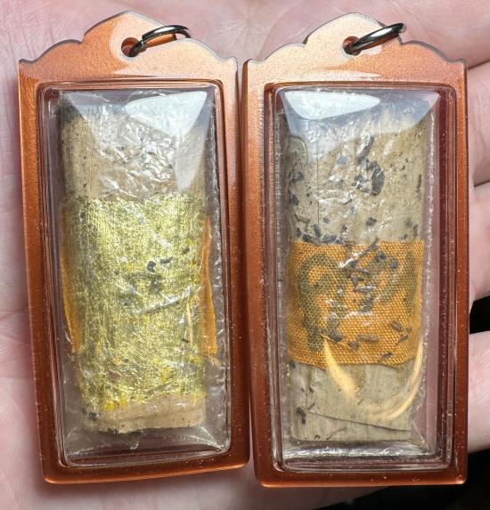 หลวงพ่อคูณ มวลยาสูบ 2 มวล จารหมึกตัวนะ เลี่ยมวินเทจเก่าๆครับ มีจีวรติดทั้ง 2 มีแผ่นปิดทองติดครับ **พระเหมาบ้านดูให้ชอบก่อนเคาะครับ