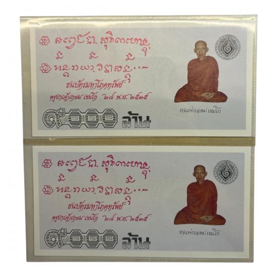 2ใบ!! ธนบัตรมหาโภคทรัพย์ ครูบาเจ้าเกษม เขมโก 28 พ.ย. 2535 9000 ล้าน |