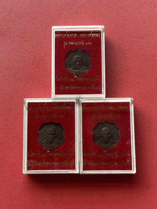 เคาะเดียวแดง หลวงปู่ทวด อาจารย์ทองรุ่นทองบารมี93 เนื้อทองแดงนอกรมดำ 3องค์ |