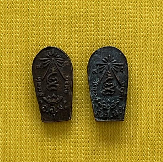 พระปรกใบมะขามหลวงปู่แหวนออกวัดสัมพันธวงค์ ปี 2520 เนื้อทองแดง 2 องค์ |