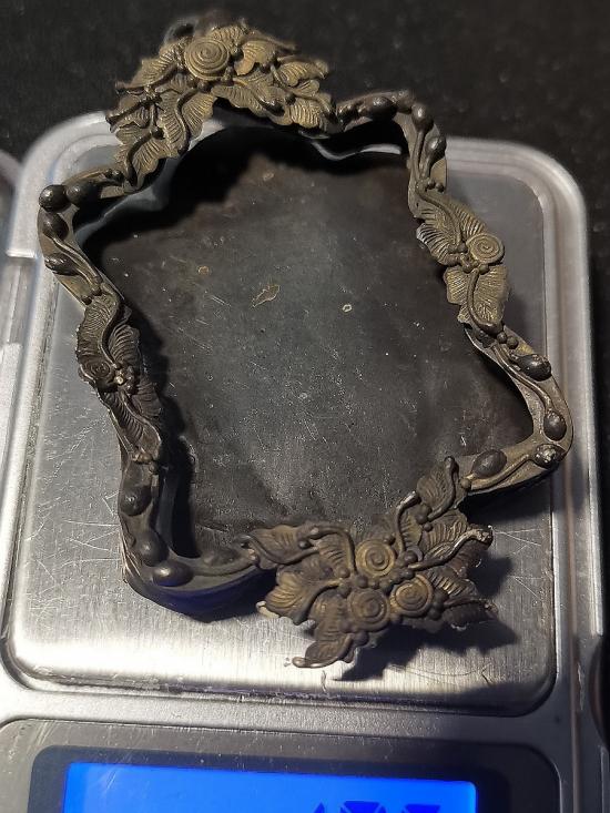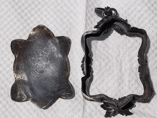 กรอบเงินเก่าโบราณลายแปลก สวยงาม ใส่เต่าหลวงปู่หลิวได้ น.น. 18.5กรัม