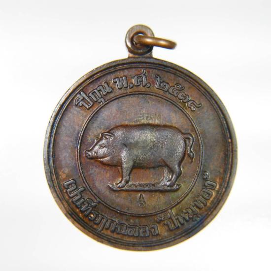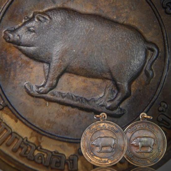 เหรียญหมูสองหน้ากรรมการ "ที่ระลึกปีหมูทอง" หลวงพ่อสาคร มนุญโญ วัดหนองกรับ จ.ระยอง พ.ศ.2538 |