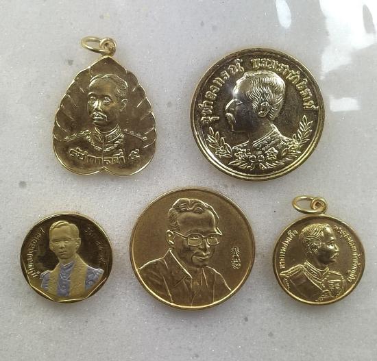 5.เหรียญ ร.5 หลังหลวงพ่อโสธร อยู่เย็นเป็นสุข ไม่ทราบปี กะไกล่ทอง จำนวน 1 เหรียญ