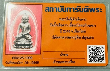 พระกริ่งตุ๊เจ้าเสือดาวตอกโค้ดศาลา ก้นอุดผงพรายกุมาร หลวงปู่ทิม วัดละหารไร่ปลุกเสกปี 2518 เนื้อนวโลหะ |