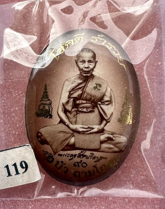 รายละเอียด ล็อกเก็ตโสฬสมงคล90ปี สีน้ำตาลซีเปียหลังเงิน เลข119 ซีลเดิม