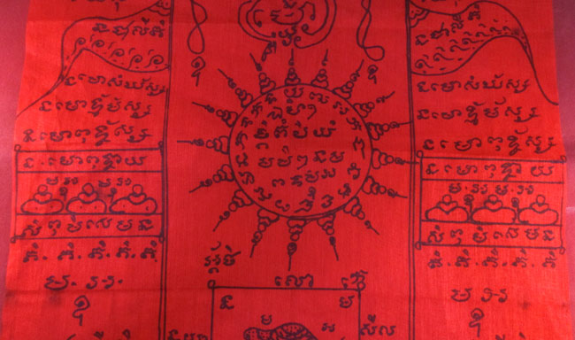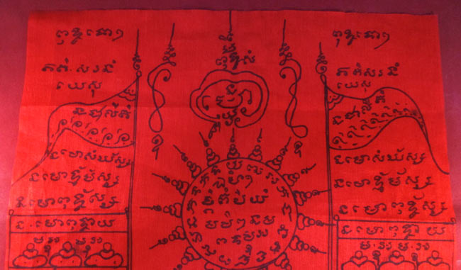 ผ้ายันต์ ไม่ทราบที่ จารยันต์ด้วยมือ ครับ