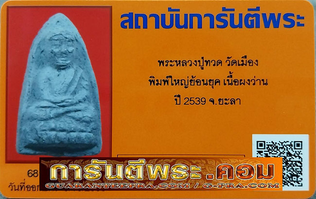 รายละเอียด หลวงปู่ทวด วัดเมือง พิมพ์ใหญ่ย้อนยุค เนื้อผงว่าน ปี2539 มาพร้อมบัตรรับรองครับ