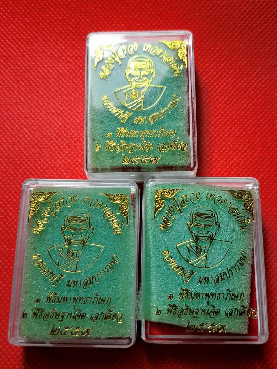 พระผงดวงเศรษฐี มหาสมปรารถนา หลวงปู่สรวง เทวดาเล่นดิน ฝังจีวรหลวงปู่สรวง และจีวรหลวงปู่หมุน วัดบ้านจาน จัดสร้างปี 2559 เคาะเดียว 3 องค์