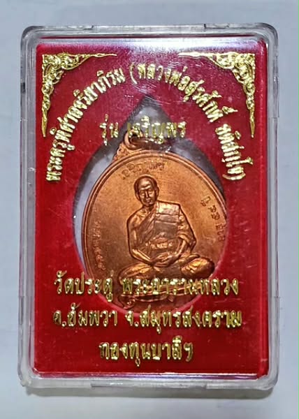 พระสวย.. เหรียญเจริญพร"เต็มองค์" พระมหาสุรศักดิ์ วัดประดู่พระอารามหลวง เนื้อทองแดง หมายเลข 9667 พร้อมกล่องเดิม |
