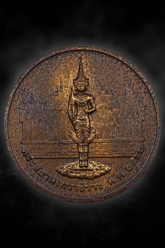 เหรียญที่ระลึกพระสยามเทวาธิราช ปี 2540 ทองแดงรมดำใหญ่ 5 ซม. ไม่มีกล่อง