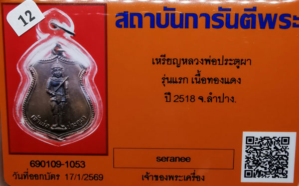 เหรียญเจ้าพ่อประตูผา รุ่นแรก เนื้อทองแดง ห่วงเดิม ปี2518 จ.ลำปาง(หลวงพ่อเกษม ปลุกเสก) + บัตร G-pra สภาพเดิมค่ะ สภาพตามรูปทุกประการค่ะ